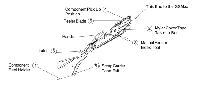 The following sequence of events describe the tape feeder functions. The numbers in parenthesis relate to the callouts on the tape feeder.